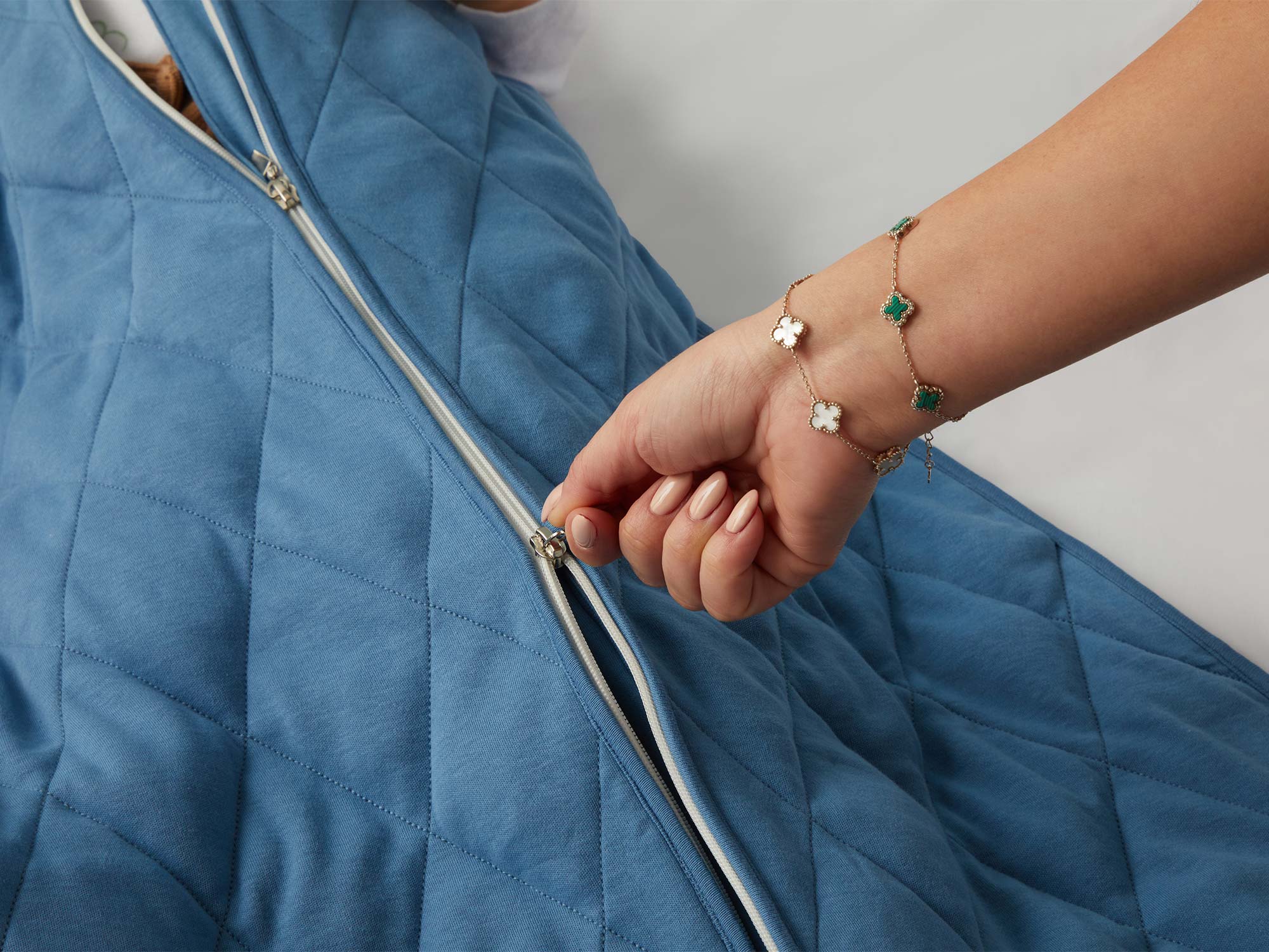 Kullanım kolaylığı sağlayan çift yönlü fermuar özelliğiyle bebeklerin rahatlığı için üretildi.